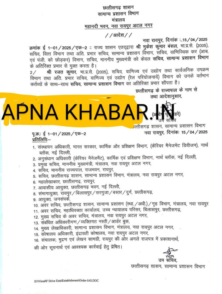 एक्सक्लूसिव बिग ब्रेकिंग,,,, आईएएस ट्रांसफर सूची जारी,,,रजत कुमार सहित इनको मिला ये प्रभार,,,देखिये सूची admin Admin posted on 9 months ago 496 views आदेश हुआ जारी 2 आईएएस अधिकारी का हुआ विभागीय फेरबदल,,, NA YOUR REACTION? 0 AWESOME! 0 NICE 0 LOVED 0 LOL 0 FUNNY 0 FAIL! 0 OMG! 0 EW!