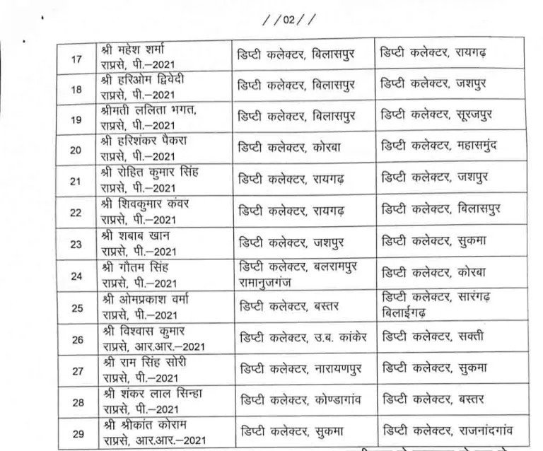 CG TRANSFER BREAKING : कलेक्टर के बाद बड़े पैमाने पर डिप्टी कलेक्टरों का तबादला, देखें लिस्ट…