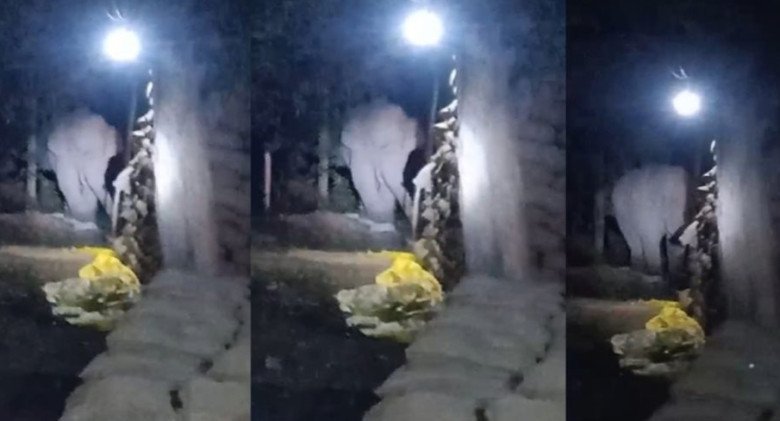 धान खरीदी केंद्र में घुसा हाथी, मचा हड़कंप, मंडी में रखा धान खाते कैमरे में कैद हुआ दंतैल