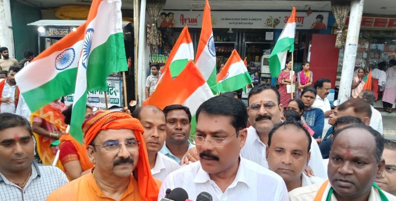 आज़ादी के अमृत महोत्सव के तहत भारतीय जनता पार्टी, जिला कोरबा द्वारा हर घर तिरंगा अभियान के अंतर्गत आयोजित ‘विशाल तिरंगा यात्रा’ ने आज शहर में देशभक्ति का अद्भुत माहौल बना दिया। दोपहर 2:30 बजे घंटाघर ओपन थिएटर से शुरू होकर हनुमान मंदिर कोसाबाड़ी चौक तक पहुंची इस यात्रा में बारिश की झड़ी भी उत्साह की राह में बाधा न बन सकी। आसमान से गिरती बूंदों के बीच हाथों में लहराते तिरंगे, गगनभेदी नारों और देशभक्ति गीतों के साथ अनुशासनबद्ध कतारों में चलते लोग मानो स्वतंत्रता दिवस का उल्लास पहले ही जी रहे थे।