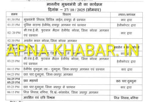 *ब्रेकिंग कोरबा मुख्यमंत्री यह टाइम पर कोरबा पहुंचेंगे पूर्व विधानसभा उपाध्यक्ष बनवारी लाल अग्रवाल के पगड़ी रसम कार्यक्रम में शामिल होंगे मुख्यमंत्री विष्णु देव साय*
