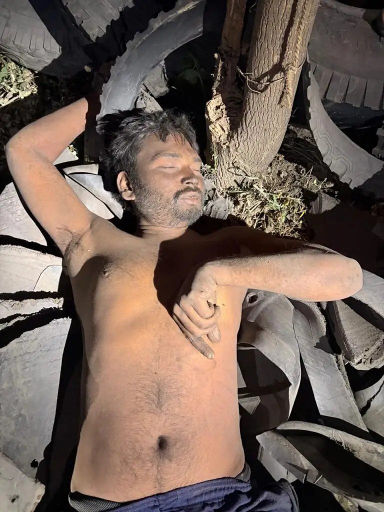 पुलिस के अनुसार शव टायरों के ढेर के बीच पड़ा मिला, जिससे आशंका जताई जा रही है कि घटना कई घंटों पहले की हो सकती है मृतक की उम्र लगभग 25–35 वर्ष के बीच अनुमानित है। शरीर पर कोई ऊपरी वस्त्र नहीं था, जबकि नीचे नीले रंग का लोअर पहना हुआ था। मृतक का रंग सांवला है और उसके बाल तथा दाढ़ी काले हैं, जो बरामदगी के समय धूल-मिट्टी से भरे हुए थे