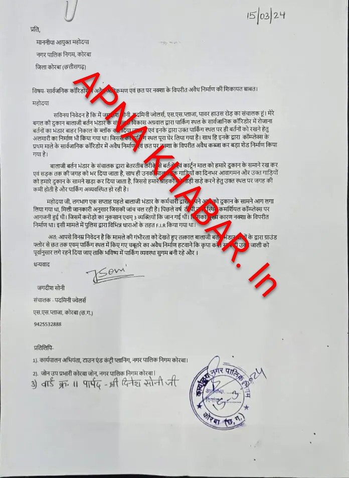 अग्निकांड में प्रभावित पद्मिनी ज्वेलर्स के संचालक ने मांगा न्याय,बालाजी स्टील के संचालक के मनमानी की पहले ही की गई थी शिकायत,अवैध निर्माण के कारण आग ने दिखाया भयावह रूप