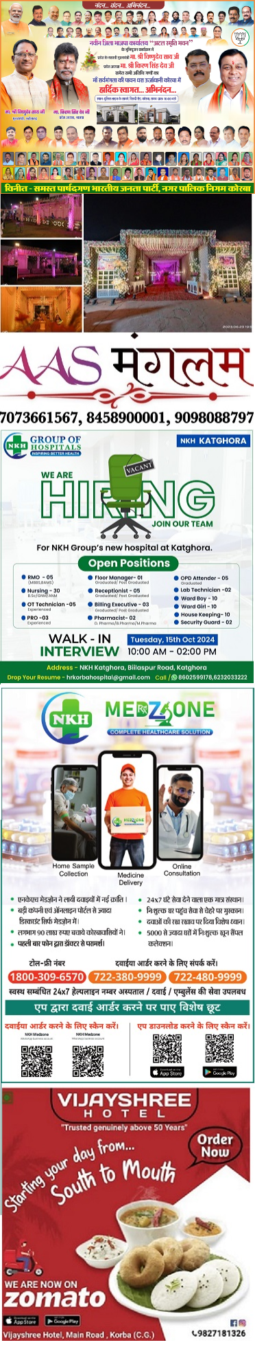कोरबा को मिलेगा भव्य ‘अटल स्मृति भवन’, मुख्यमंत्री विष्... जिला अध्यक्ष गोपाल मोदी के नेतृत्व में ऐतिहासिक आयोजन admin 12 hours ago