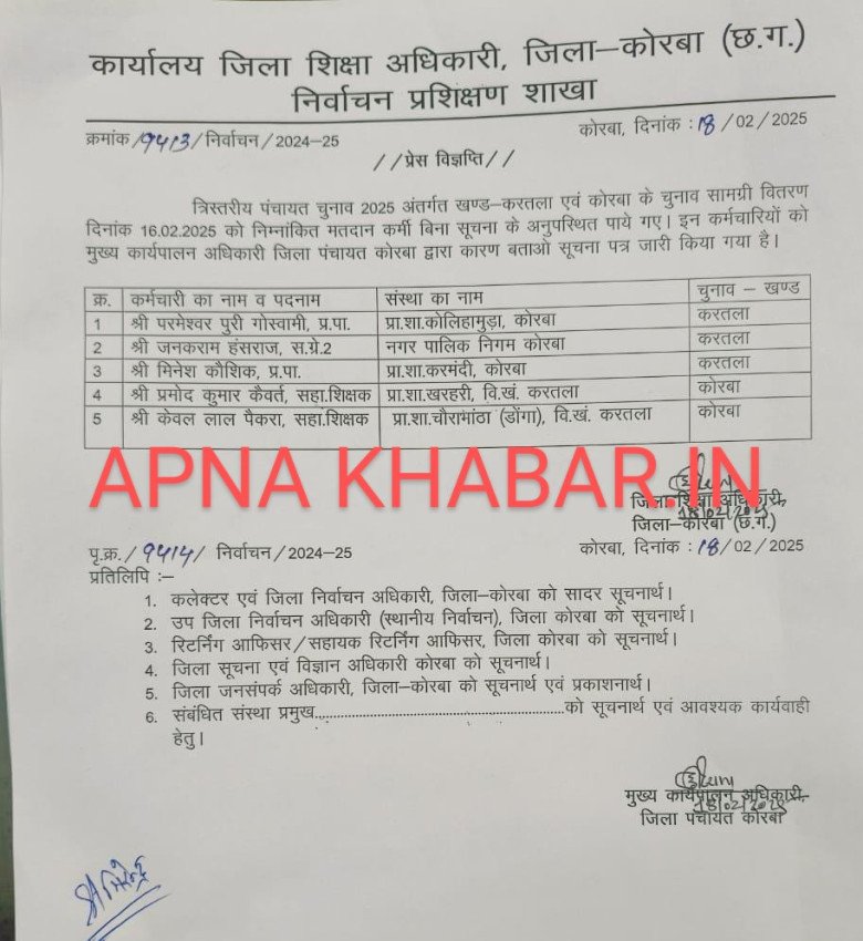 अपने कार्य में लापरवाही बरतने वाले पांच शिक्षकों को कारण बताओं नोटिस हुआ जारी