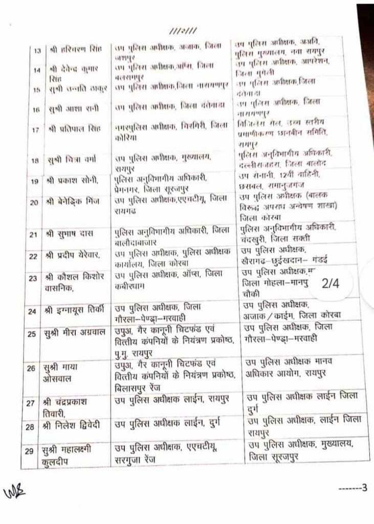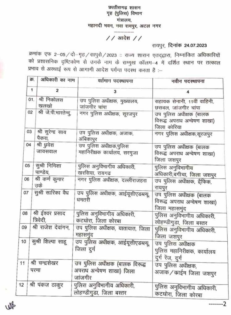 राज्य पुलिस सेवा के अधिकारियों का बड़े पैमाने पर तबादला, जानिए किसे मिली कहां की जिम्मेदारी…