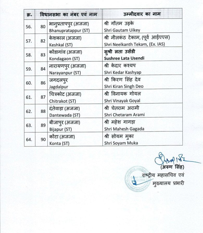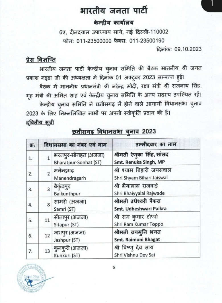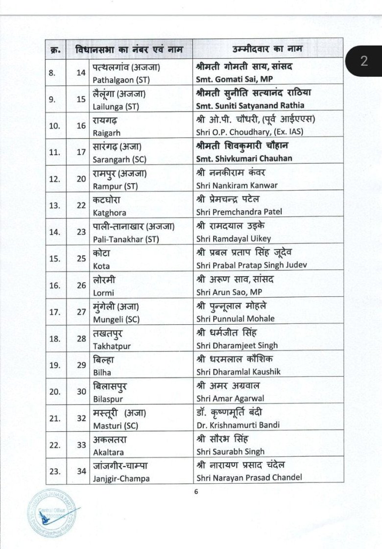 बीजेपी ने उम्मीदवारों की दूसरी लिस्ट जारी की