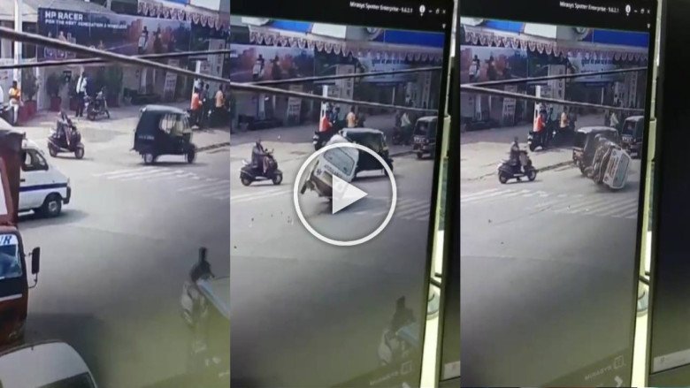 तेज रफ्तार कार की टक्कर से बीच सड़क पर पलटी एम्बुलेंस, हादसे का सीसीटीवी फुटेज आया सामने