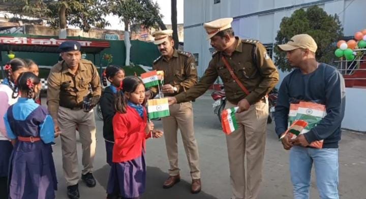 कोतवाली टीआई और सीएसपी ने थाना परिसर में स्कूली बच्चों के साथ बड़े धूमधाम से मनाया 26 जनवरी, तिरंगे झंडे चॉकलेट और मिठाई बांट कर दी बधाई, कोतवाली थाना परिसर में सेल्फी प्वाइंट रहा आकर्षण का केंद्र