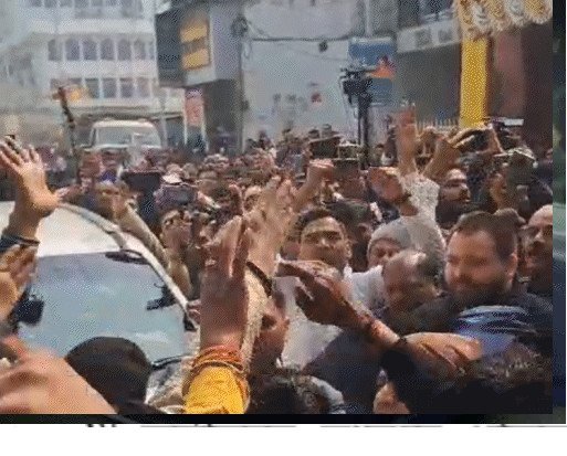 तेजस्वी के पहुंचते ही समर्थकों की भीड़ ने कार को घेर लिया। तेजस्वी के समर्थन में नारेबाजी की गई। काफी मशक्कत के बाद उनकी गाड़ी अंदर पहुंची।