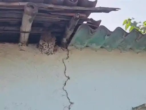 ब्लास्टिंग की वजह से घरों के छप्पर गिरे