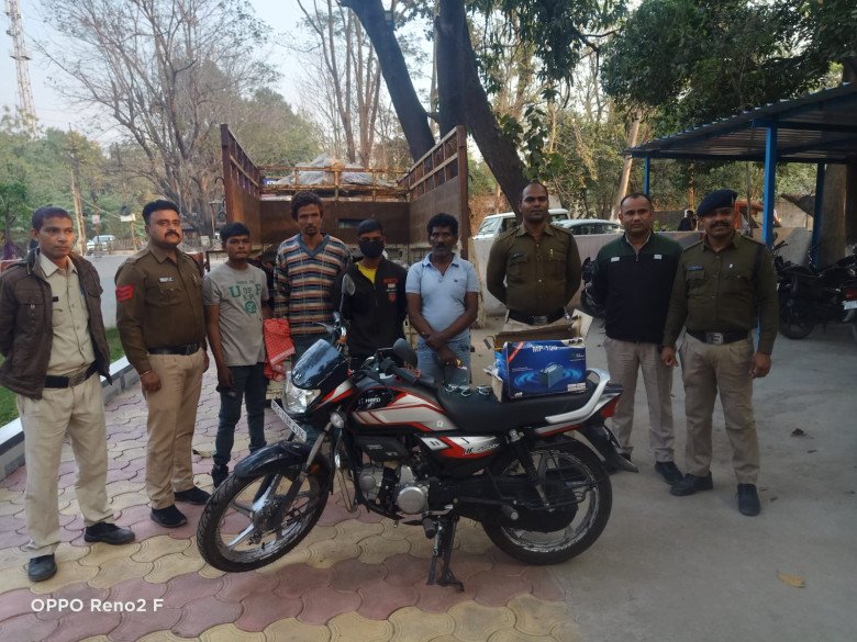 कोरबा. श्रीमान पुलिस अधीक्षक महोदय कोरबा श्री जितेन्द्र शुक्ला के द्वारा अवैध गतिविधियों पर प्रभावी कार्यवाही करने एवं असामाजिक तत्वों के विरुद्ध कार्यवाही करने के निर्देश पर लगातार कार्यवाही किया जा रहा है. इसी क्रम में SECL के टी लाइन के स्टोर रूम में हुए चोरी को सुलझाने में सफलता प्राप्त हुई है. दिनांक 03-04/02/2023 दरमियानी रात को SECL खदान के टी लाइन स्टोर रूम से खदान में उपयोग होने वाले उपकरण के पार्ट्स और बैटरी की चोरी हो गयी थी जिस पर पुलिस अधीक्षक महोदय द्वारा तत्काल पतासाजी के निर्देश प्राप्त होने पर अतिरिक्त पुलिस अधीक्षक महोदय श्री अभिषेक वर्मा, नगर पुलिस अधीक्षक महोदय श्री भूषण एक्का एवं थाना प्रभारी कोतवाली श्री अभिनव कांत के मार्गदर्शन में चौकी प्रभारी मानिकपुर प्रेमचंद साहू के नेतृत्व में मानिकपुर पुलिस द्वारा चोरी के सूचना के चंद घंटे के भीतर ही चोरी में शामिल 4 आरोपी से मेमोरंडम के आधार पर चोरी किये गए रोटटिंग यूनिट फ्लोमोर पम्प (गन मेटल)4 नग, रोटटिंग यूनिट पंप 8 नग, गियर बॉक्स वॉर्न व्हील 2 नग, CHP बिअरिंग और बैटरी को बरामद कर जप्त किया गया है साथ ही चोरी में प्रयुक्त वाहन पिकप- CG 12 BM 9904 तथा मोटर साइकिल HF डीलक्स CG 12 BM 4396 को भी जप्त कर आरोपीयों (1) अविष्कार श्रीवास पिता अशोक श्रीवास उम्र 19 वर्ष निवासी मुड़ापार (2) आकाश उरांव उर्फ़ टबर्रा पिता बीफे उराव उम्र 19 वर्ष निवासी मुड़ापार (3) अभिमन्यु मालाकार पिता अर्जुन मालाकार उम्र 38 वर्ष निवासी पंप हॉउस कोरबा (4) मन्नू दास पिता रामदास उम्र 53 वर्ष निवासी संजय नगर कोरबा को गिरफ्तार कर न्यायिक रिमांड में भेजा गया है.
