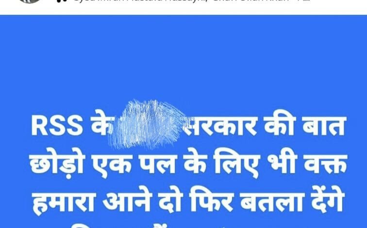 कोरबा। कोरबा जिले के उरगा थाना अंतर्गत ग्राम तिलकेजा निवासी किशनलाल साव ने करतला थाना क्षेत्र के ग्राम नोनबिर्रा निवासी हजरत अली के विरूद्ध आरएसएस के खिलाफ इंस्ट्राग्राम में 18 मई 2024 को अनर्गल पोस्ट करने की शिकायत थाने में की थी। आरएसएस के खिलाफ किए गए पोस्ट से धार्मिक उन्माद फैलने की आशंका के साथ-साथ हिन्दू समाज की भावनाओं को ठेस पहुंची। किशनलाल की रिपोर्ट पर हजरत अली के विरूद्ध उरगा थाना में धारा 295 ए, 505 (1) (बी) के तहत अपराध पंजीबद्ध किया गया। सोशल मीडिया इंस्ट्राग्राम में गरीब बादशाह के नाम से आईडी चलाने वाले नोनबिर्रा निवासी हजरत अली को पुलिस ने गिरफ्तार कर न्यायालय में पेश करते हुए आज जेल दाखिल कराने की कार्यवाही की है।