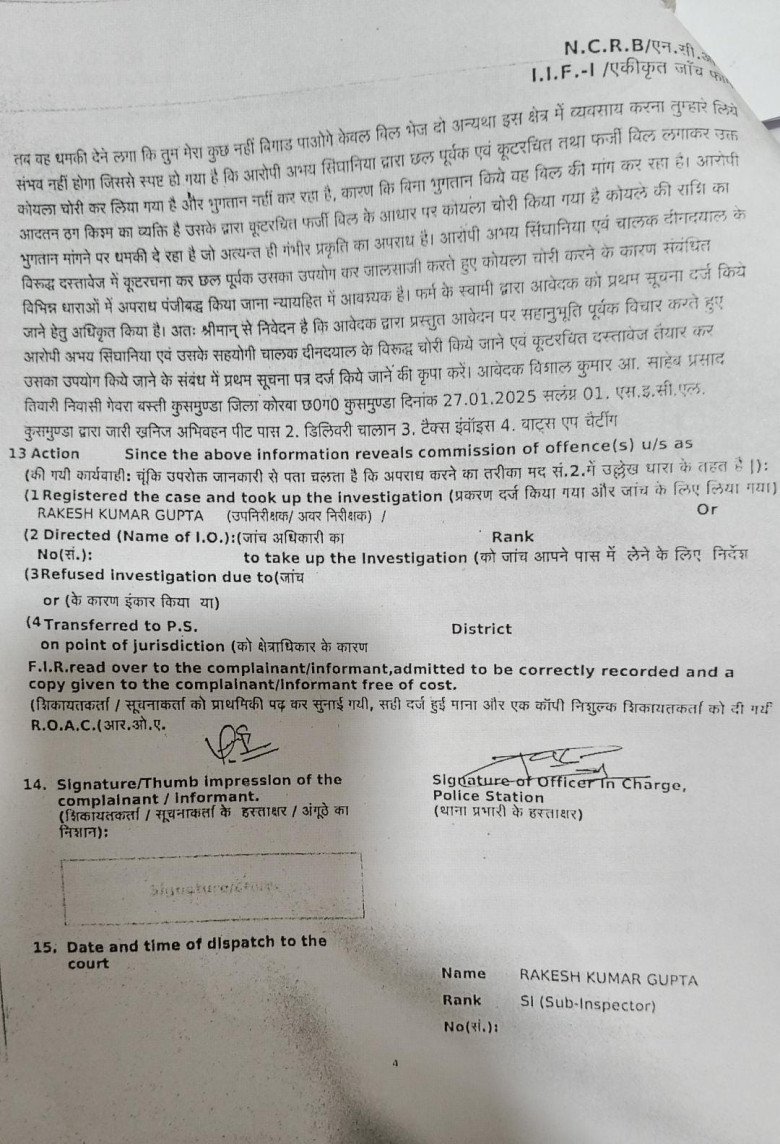 शिकायतकर्ता के अनुसार, अभय सिंघानिया एक आदतन ठग है, जो पहले भी अलग-अलग फर्मों से फर्जी बिलों के जरिए कोयला चोरी कर चुका है। जब भी कोई भुगतान मांगता है, वह धमकी देने लगता है।