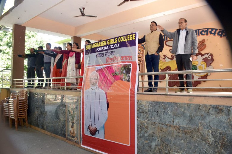 कोरबा: प्रधानमंत्री नरेंद्र मोदी के द्वारा शुरू की गई विकसित भारत संकल्प यात्रा के तहत कोरबा में अग्रसेन कन्या महाविद्यालय में हमारा संकल्प विकसित भारत का शपथ महाविद्यालय के प्राचार्य, समिति सदस्य एवं प्राध्यापकों ने ली । इसके पश्चात योजना के विजन को वक्ताओं ने छात्रों के समक्ष रखा।