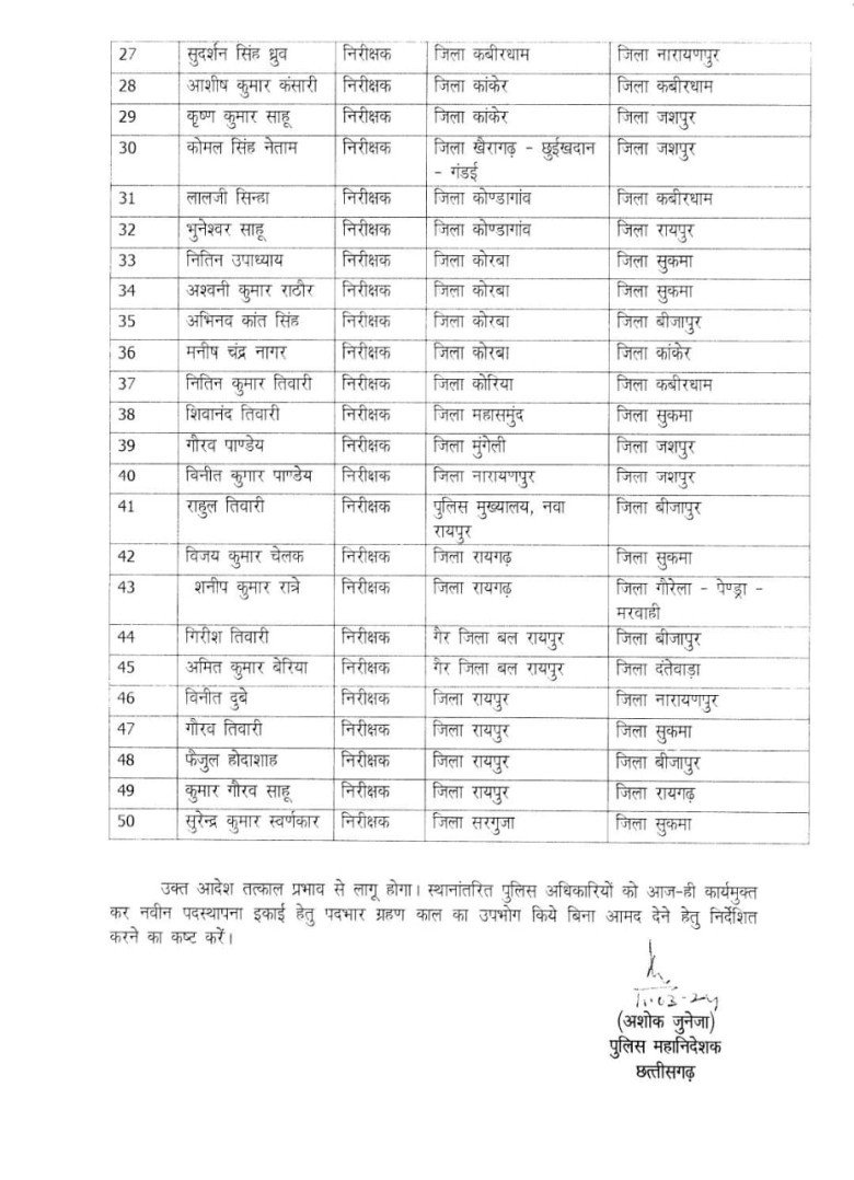 50 टीआई का हुआ तबादला